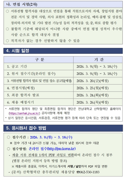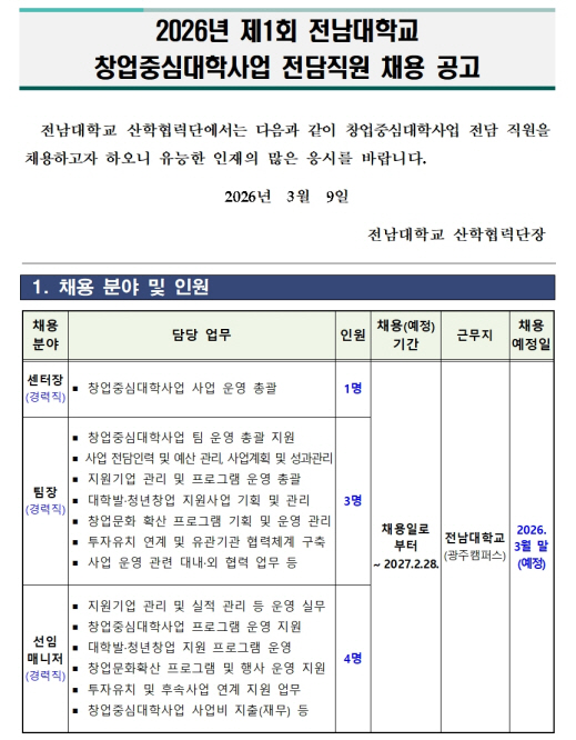2026년 제1회 전남대학교 창업중심대학사업 전담직원 채용 공고